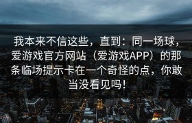 我本来不信这些,直到:同一场球,爱游戏官方网站(爱游戏APP)的那条临场提示卡在一个奇怪的点,你敢当没看见吗!