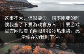 这事不大,但很要命:赔率刚变的时候我查了下爱游戏官方入口|爱游戏官方网站看了两眼那段冷热走势,感觉像...