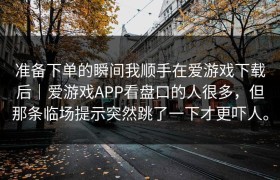 准备下单的瞬间我顺手在爱游戏下载后|爱游戏APP看盘口的人很多,但那条临场提示突然跳了一下才更吓人...