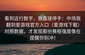看到那一行数字,我直接停手。那不是直觉,是经验在敲警钟:中场休息时,我顺手翻到爱游戏官方入口(爱游戏...