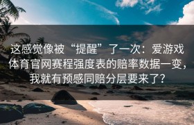 这感觉像被“提醒”了一次:爱游戏体育官网赛程强度表的赔率数据一变,我就有预感同赔分层要来了? 那种瞬...
