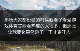 那场大家都说稳的时候我看了看爱游戏体育官网看热度的人很多,但那张让球变化突然跳了一下才更吓人。