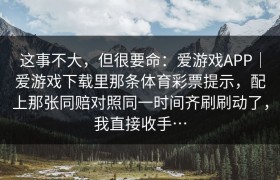 这事不大,但很要命:爱游戏APP|爱游戏下载里那条体育彩票提示,配上那张同赔对照同一时间齐刷刷动了,...