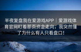 半夜复盘我在爱游戏APP|爱游戏体育官网盯着那页资金走向,我突然懂了为什么有人只看盘口!