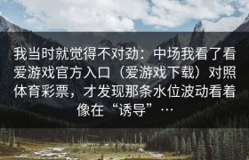我当时就觉得不对劲:中场我看了看爱游戏官方入口(爱游戏下载)对照体育彩票,才发现那条水位波动看着像在...
