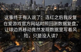 这事终于有人说了:连红之后我反复在爱游戏官方网站对照回测数据复盘,让球边界移动竟然发现数据里写着风险...