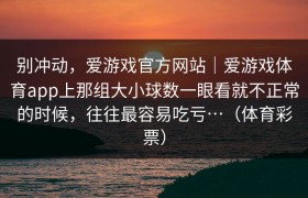别冲动,爱游戏官方网站|爱游戏体育app上那组大小球数一眼看就不正常的时候,往往最容易吃亏…(体育彩票)