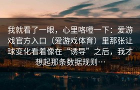 我就看了一眼,心里咯噔一下:爱游戏官方入口(爱游戏体育)里那张让球变化看着像在“诱导”之后,我才想起...