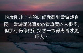 我差点就跟着冲了:爱游戏体育官网(爱游戏官网)的那行伤停更新一变,我就把热度那页又翻了一遍 我差点...